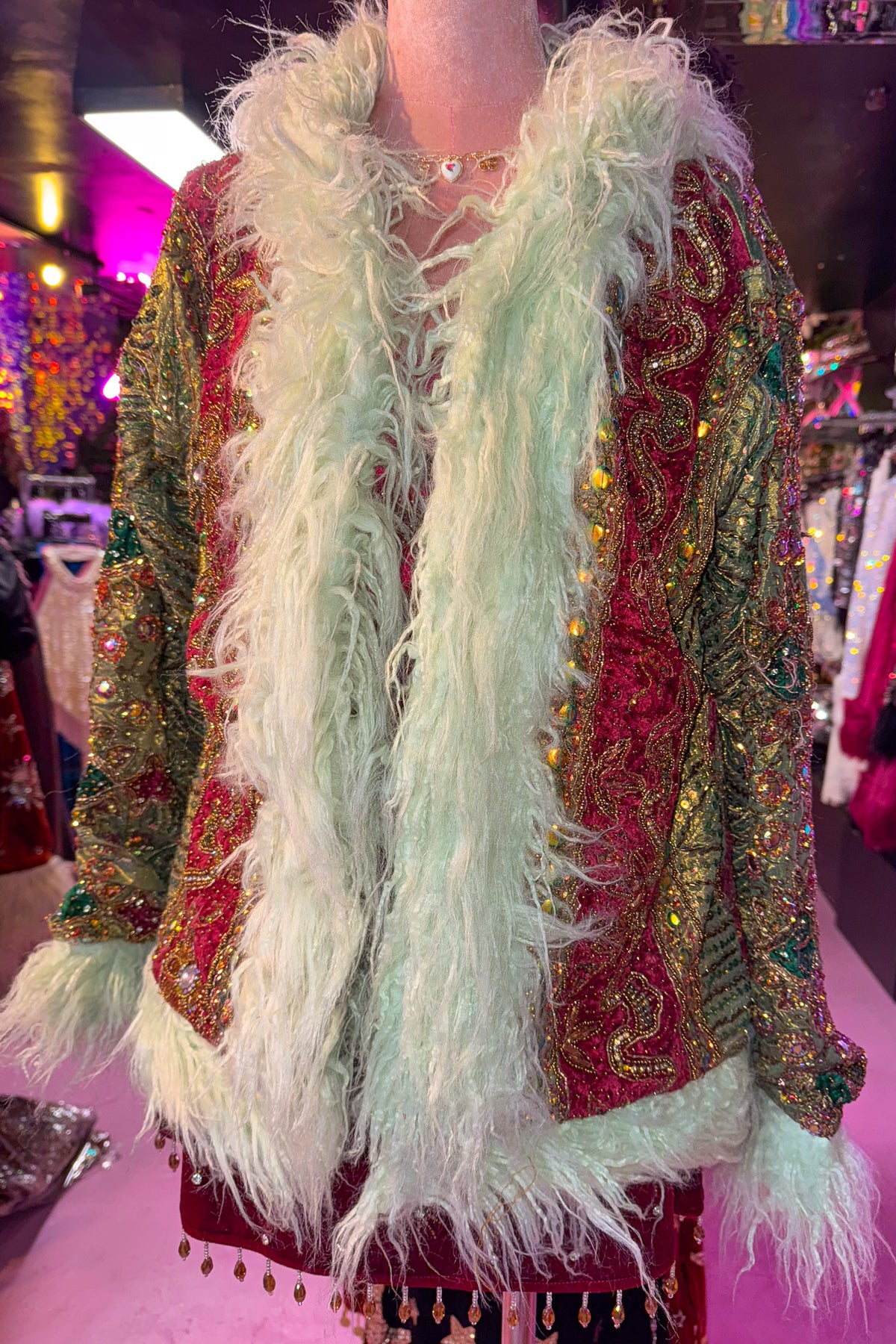 Wrap yourself in vibrant and sustainable style. Each of these stunning coats is handcrafted from recycled sari fabric, giving new life to traditional textiles rich in color and pattern. The design features a luxurious faux fur trim, pockets, hook and eye closure and a matching fabric cotton lining.