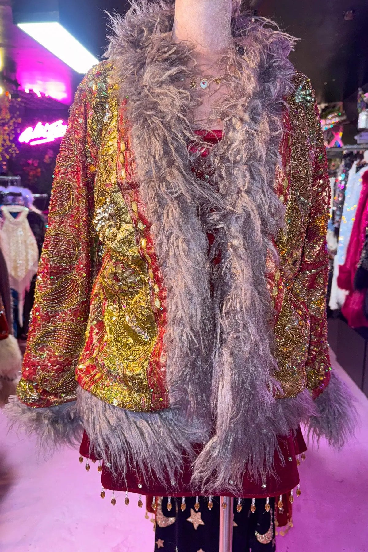 Wrap yourself in vibrant and sustainable style. Each of these stunning coats is handcrafted from recycled sari fabric, giving new life to traditional textiles rich in color and pattern. The design features a luxurious faux fur trim, pockets, hook and eye closure and a matching fabric cotton lining.