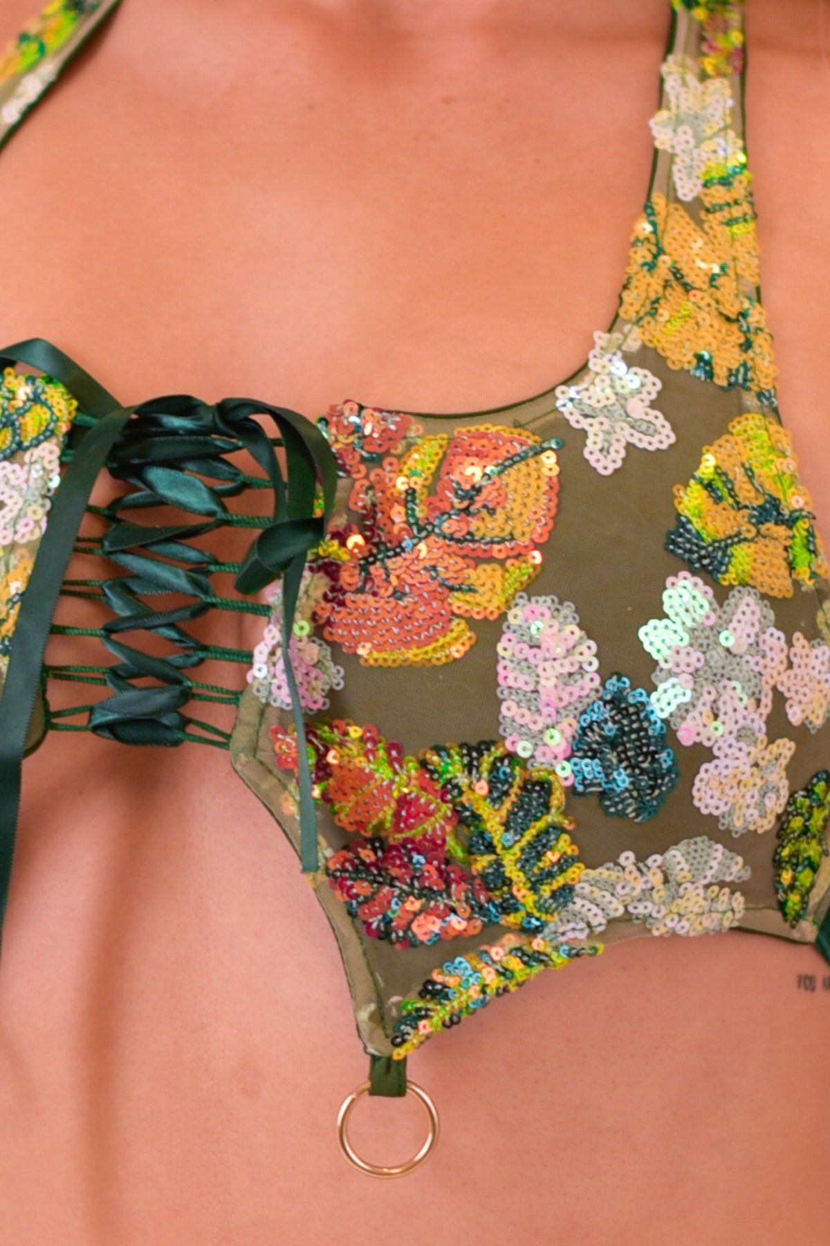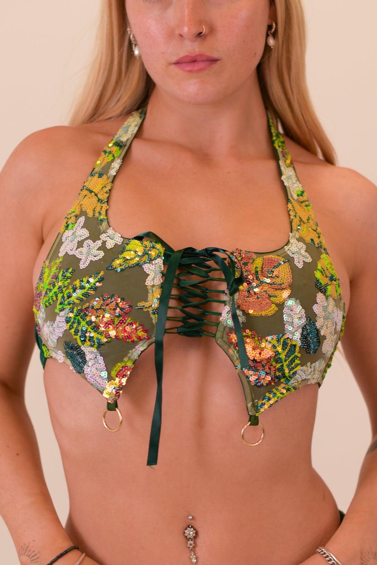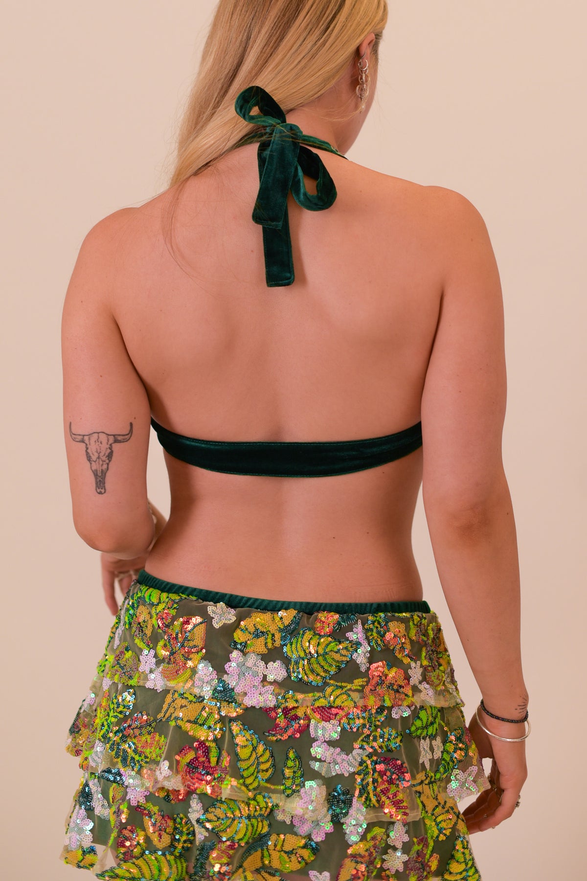 Completa tu look festivalero con el top halter de lentejuelas Ivy: una prenda deslumbrante diseñada para que destaques en cualquier evento. Este vibrante top verde de lentejuelas capta la luz con cada movimiento, asegurando que todas las miradas se centren en ti.